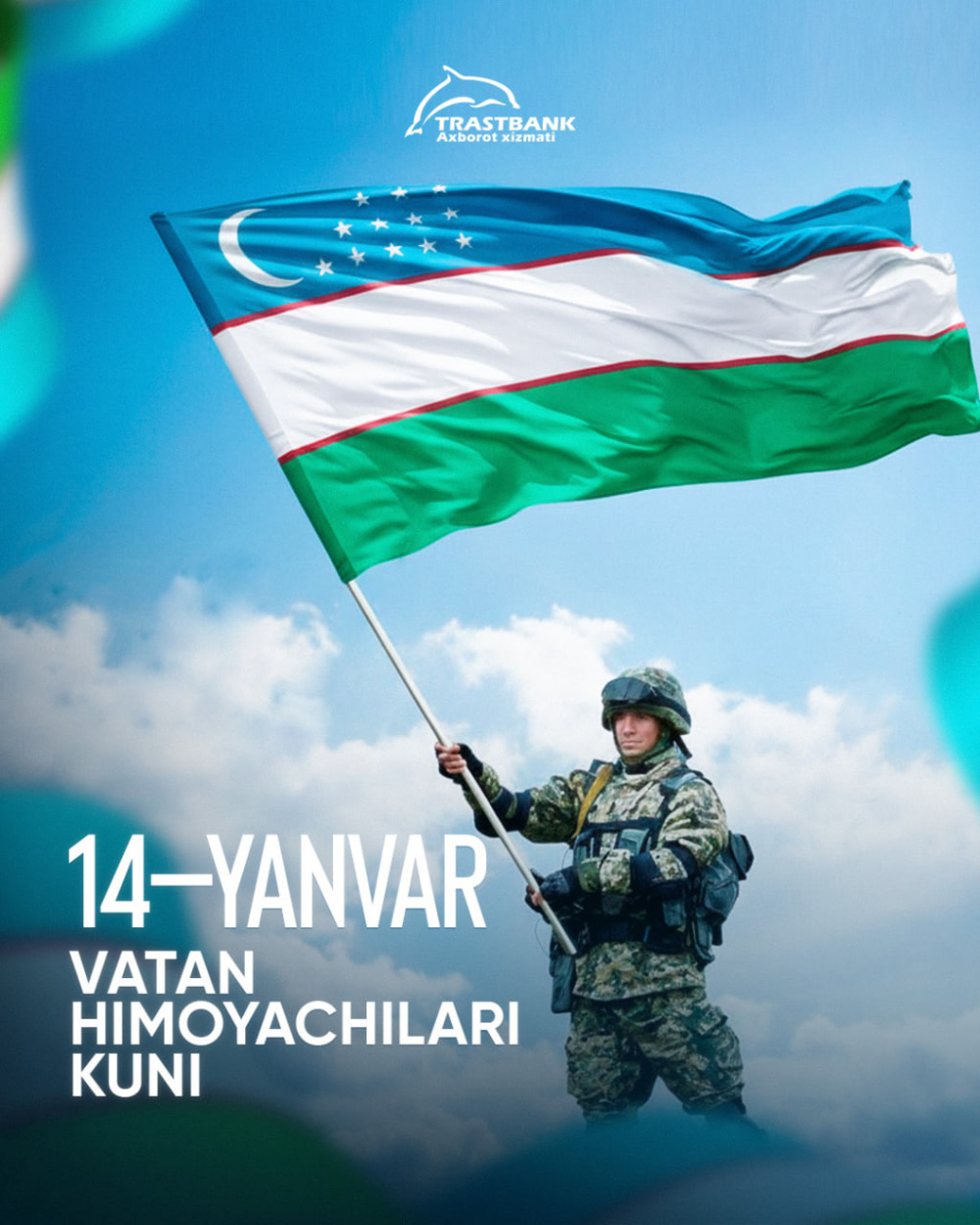 O‘zbekiston Respublikasi Qurolli Kuchlari tashkil etilganligining 34 yilligi hamda 14-yanvar – Vatan himoyachilari kuni munosabati bilan samimiy muborakbod etamiz. Barchangizga mustahkam sog‘lik, oilangizga osoyishtalik va hayotingizda yangi yutuqlar tilaymiz.