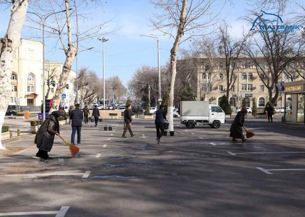 photo_2026-03-14_12-09-12.jpg “Trastbank” xususiy aksiyadorlik banki Bosh ofisi, Amaliyot boshqarmasi hamda hududlardagi bank xizmatlari ofislari va markazlarida faoliyat yurituvchi xodimlar erta tongdan ushbu obodonlashtirish ishlariga bel bog‘lab, faol ishtirok etishmoqda. Binolar atrofi hamda ariq-zovurlar tozalanib, daraxtlarni oqlash va butash ishlari olib borilmoqda.photo_2026-03-14_12-09-05.jpg